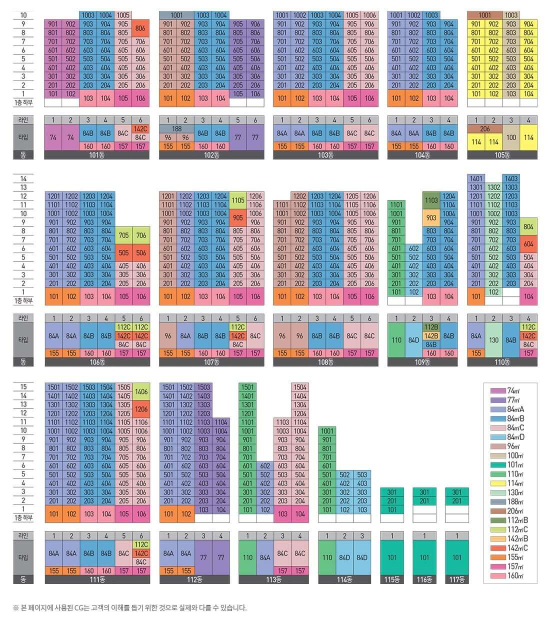 전용면적: 74㎡~206㎡(총 21가지 타입 제공)