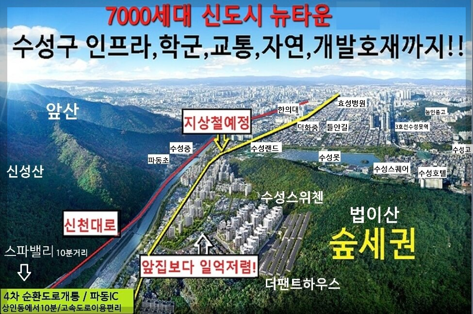 • 수성남부선 철도 추진: 교통망 확장으로 입지 가치 상승 예상.