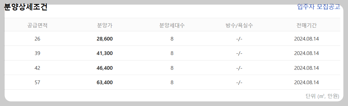 8평(8세대), 12평(8세대), 13평(8세대), 17평(8세대) 등이 있으며, 분양일정은 일반 1순위는 8월 7일, 일반 2순위는 8월 8일에 시작되며, 당첨자 발표는 8월 14일에 예정되어 있습니다. 계약체결은 8월 27일까지 진행될 예정입니다.