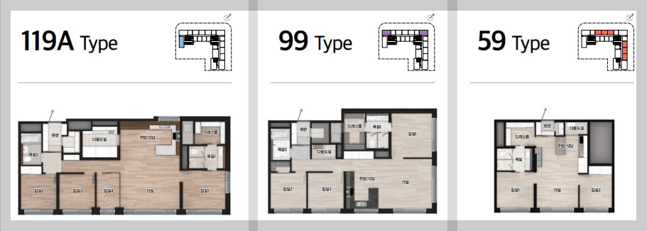 492실[49㎡(192실), 59㎡(144실), 99㎡(52실), 119㎡(104실)] 구성