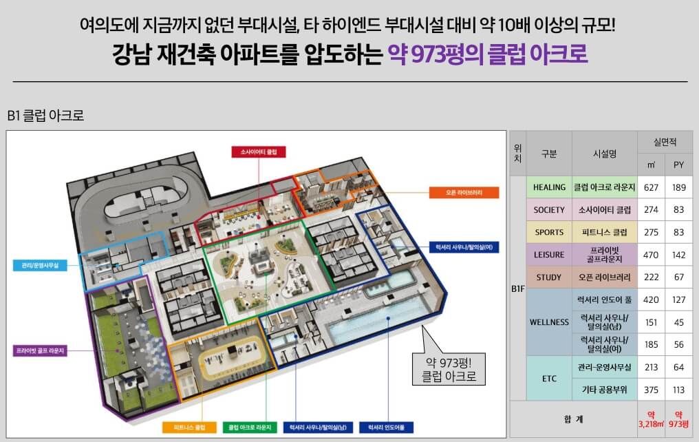 클럽 아크로'와 같은 커뮤니티 시설은 입주민들의 생활 편의성을 증대시키고 있습니다. 오픈 라이브러리, 실내수영장, 키즈풀, 골프라운지, 사우나 등이 제공되며, 비즈니스와 레저를 위한 다양한 공간을 제공하여 삶의 질을 향상시킵니다. 그리고 아크로 여의도 더원은 단순히 주거 공간을 넘어서 커뮤니티 시설로서도 높은 가치를 제공합니다. '클럽 아크로'라는 명칭 아래 럭셔리한 풀, 골프라운지, 피트니스, 사우나 등 다양한 시설을 갖추고 있어 입주민들의 품격 있는 삶을 누릴 수 있습니다.