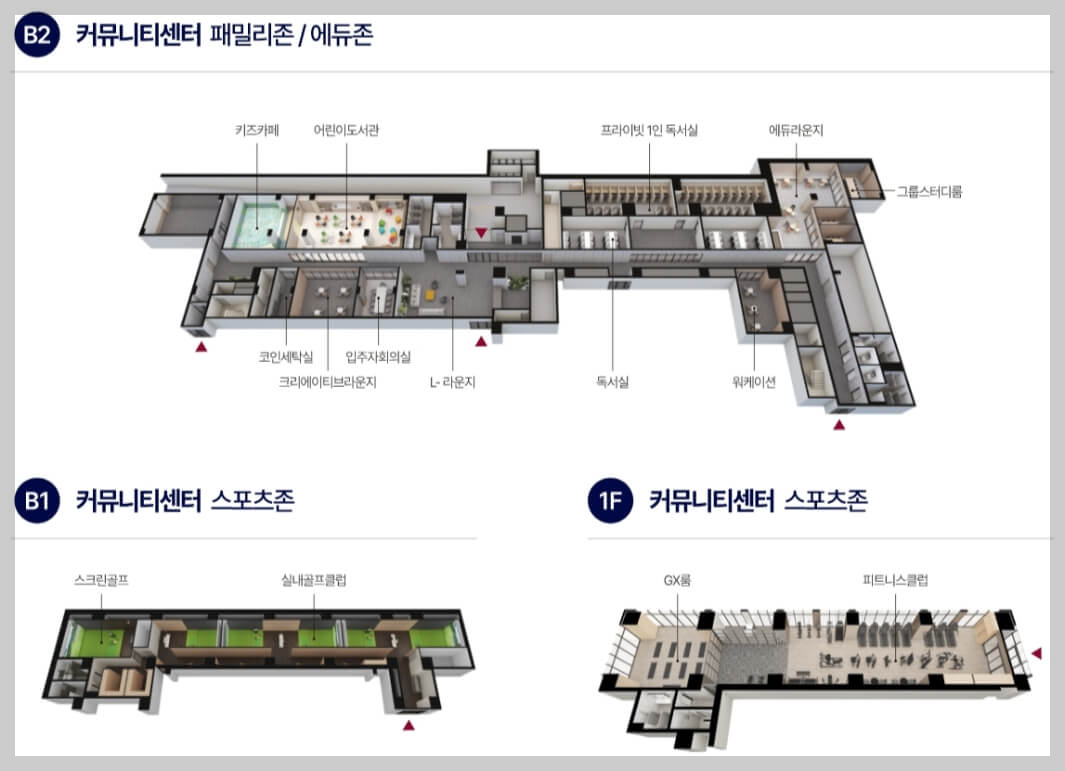 - 피트니스클럽·GX룸·키즈카페·어린이 도서관 등 커뮤니티 강화