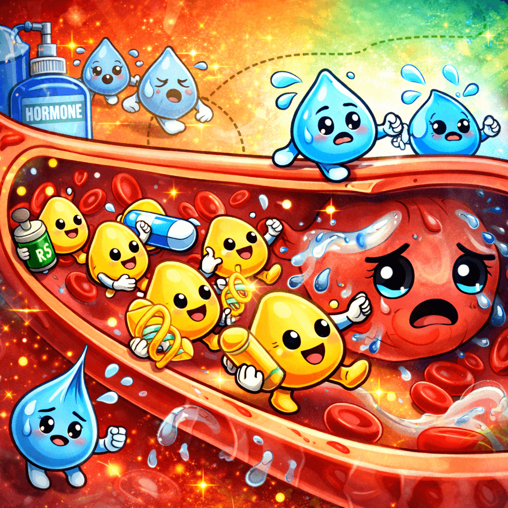 두 번째는 '운반 기능'입니다. 알부민은 마치 혈액 속의 택배 기사와 같습니다. 우리 몸에 필요한 호르몬, 비타민, 칼슘 같은 영양소는 물론이고, 우리가 복용한 약 성분을 필요한 장기까지 안전하게 실어 나릅니다. 따라서 알부민 수치가 흔들린다는 것은 단순히 단백질 수치가 낮은 것이 아니라, 몸의 운송 시스템과 수분 관리 시스템에 비상벨이 울린 것과 같습니다.