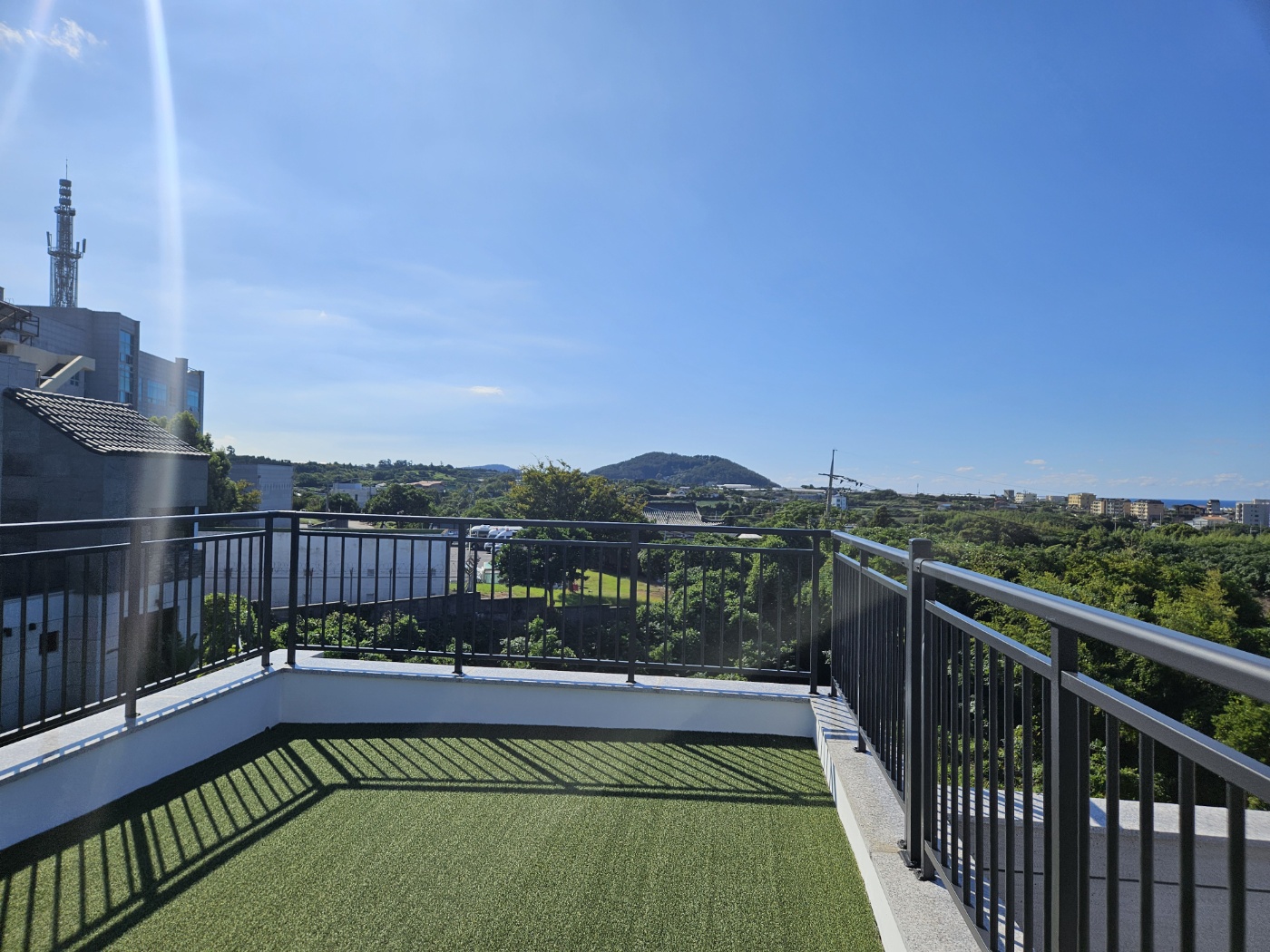 옥상 시설: 골프 퍼팅 연습을 위한 인조잔디와 다양한 활용이 가능한 루프탑.
