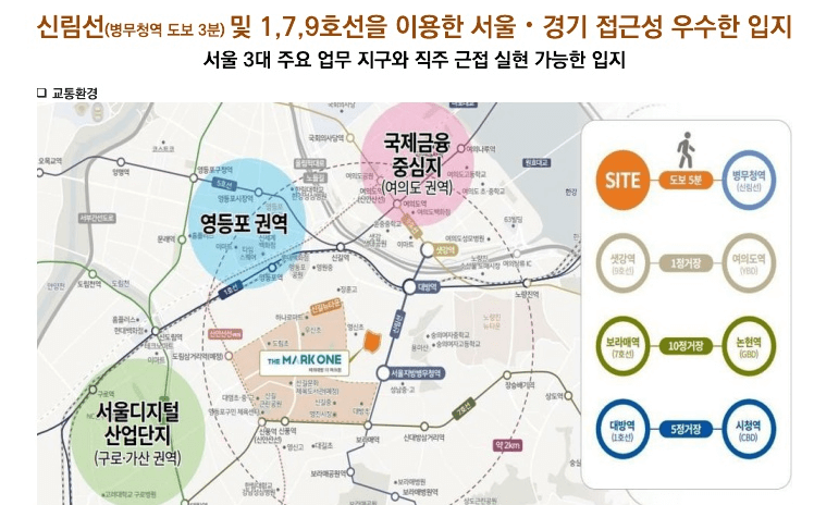 단지 인근에는 신림선 서울지방병무청역(도보 3분), 1호선 대방역, 7호선 보라매역이 도보권에 위치해 있으며, 향후 신안산선과 서부선 경전철이 개통되면 수도권 전역으로의 접근성이 더욱 개선될 예정입니다.