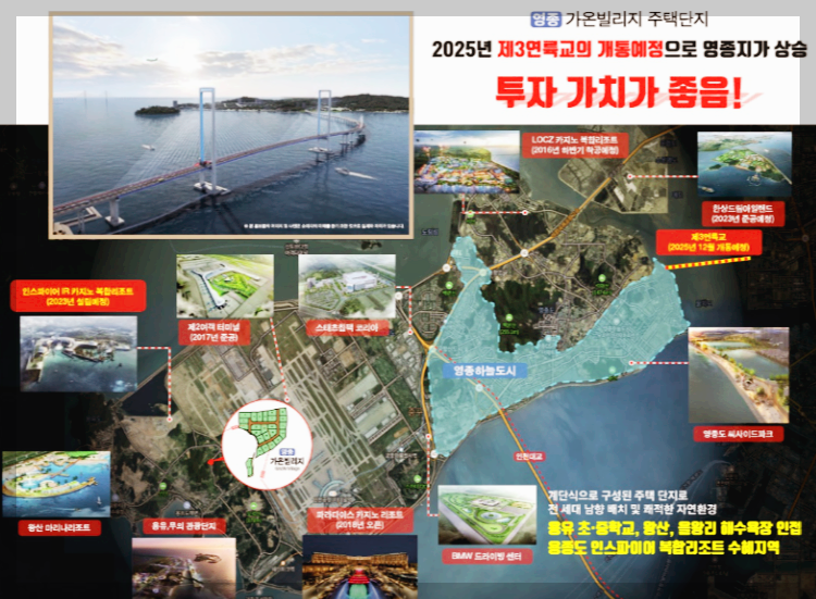 또한 인스카이어 복합리조트 수혜지역,2025년 제3연륙교의 개통예정으로 영종지가 상승으로 투가가치가 좋습니다.
