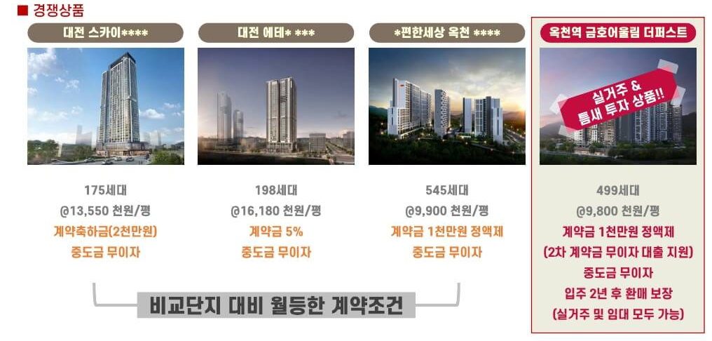 대전 및 옥천지역에 신규분양중 아파트 분양조건 대비 비교 우위