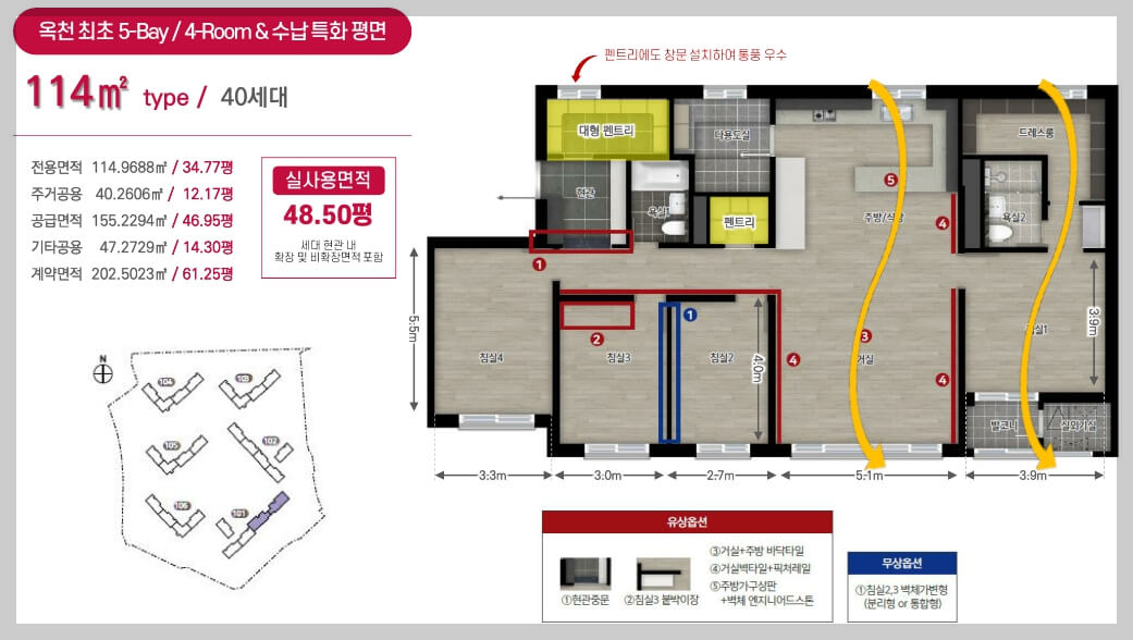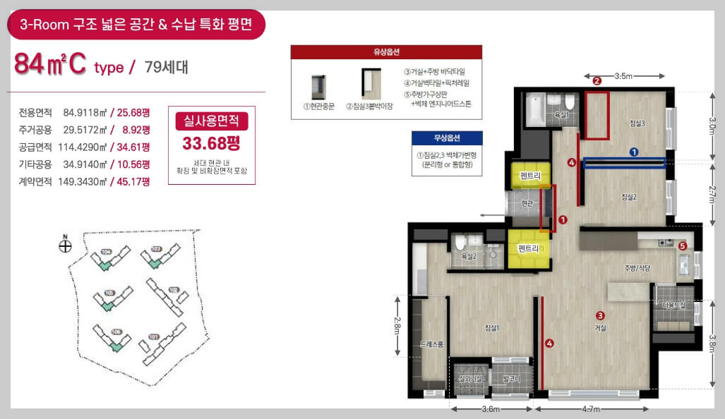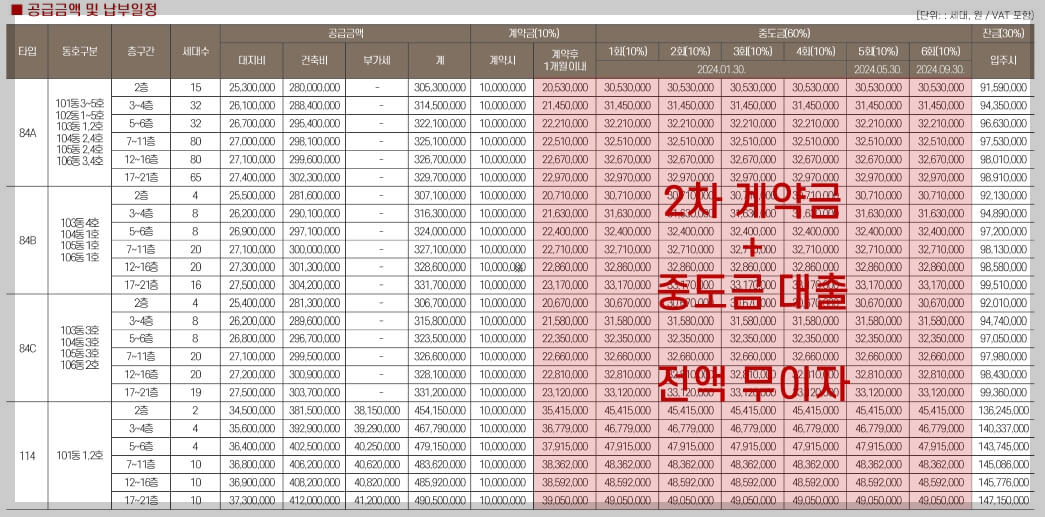 전용면적은 84㎡와 114㎡의 4가지 타입으로 구성되어 있습니다.