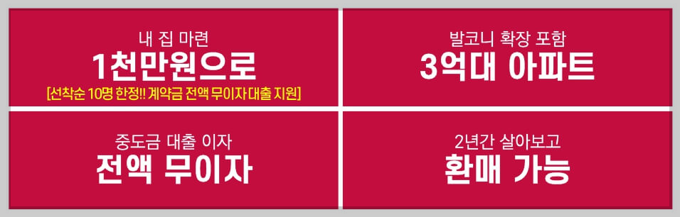 계약금 1천만원 정액제 + 중도금 무이자 + 입주 2년 후 환매 보장(특약서 발행)