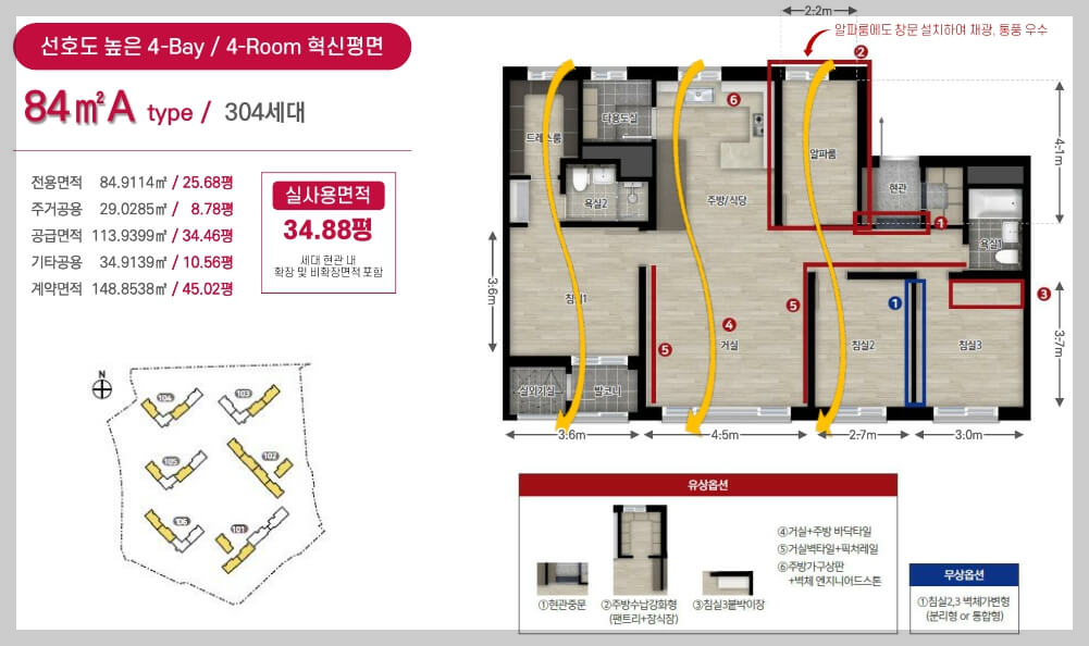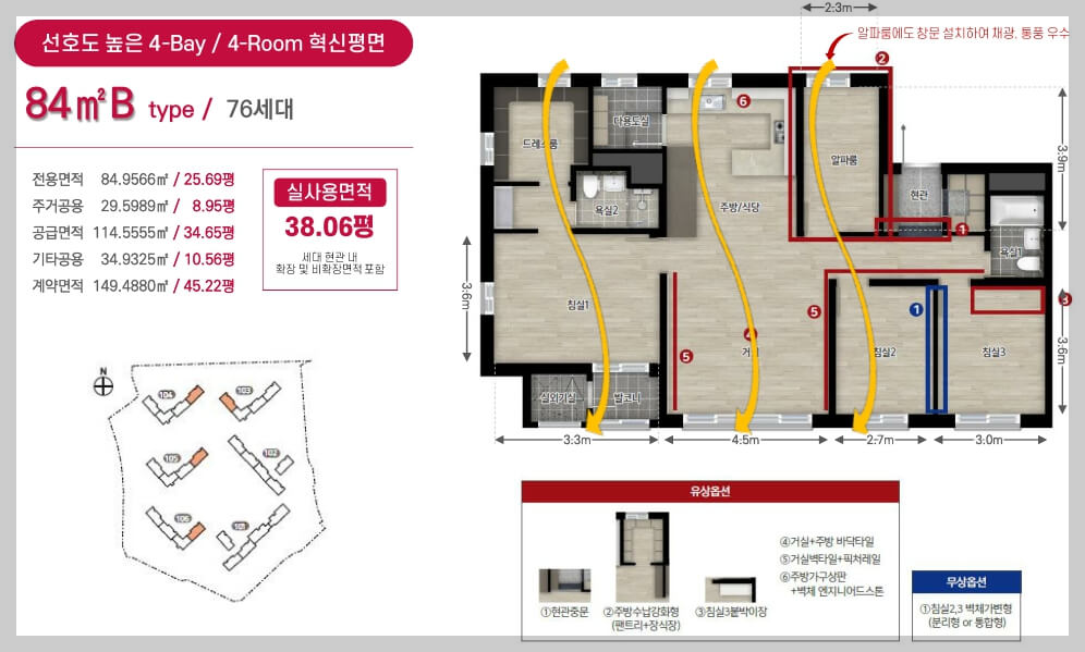 선호도가 높은 전용 84㎡ 위주로 구성되어 있으며, 맞통풍이 가능한 구조로 설계되어 있습니다.