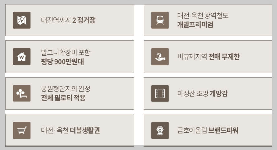 대전 및 옥천지역에 신규분양중 아파트 분양조건 대비 비교 우위