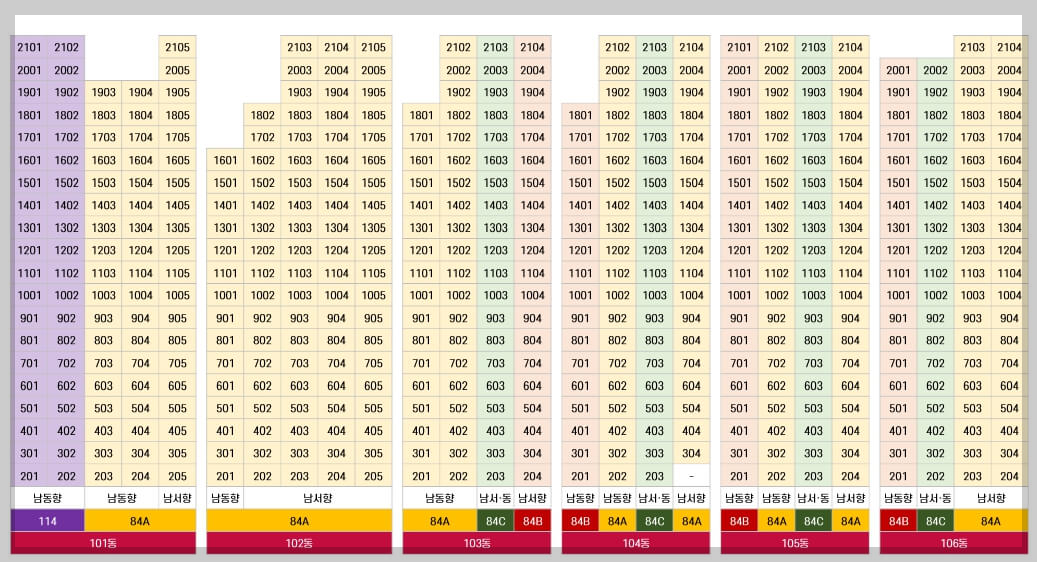 전용면적은 84㎡와 114㎡의 4가지 타입으로 구성되어 있습니다.