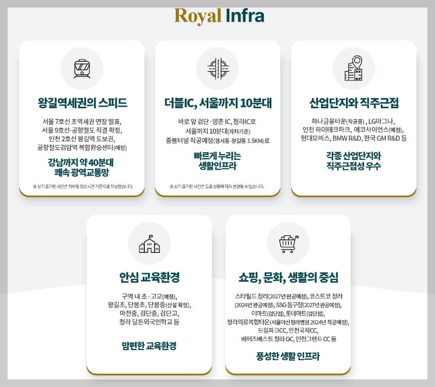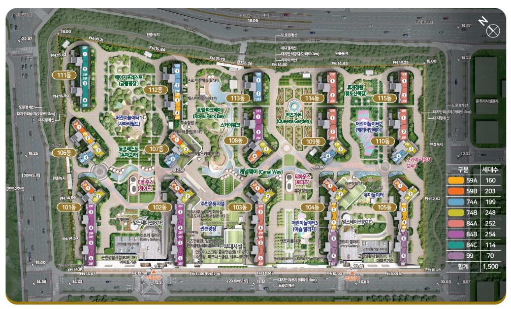 왕길역 로열파크씨티 푸르지오는 인천 지하철 2호선 왕길역 일대 1435만 5000㎡ 부지에 자리한 리조트 신도시의 시범단지로, 지하 2층부터 지상 29층까지 15개 동에 총 1500 가구가 전용면적 59, 74, 84, 99㎡으로 구성되어 있습니다. 왕길역 로열파크씨티 푸르지오 조경은 대한민국 조경 분야 1위 삼성물산 리조트부문이 맡았습니다.