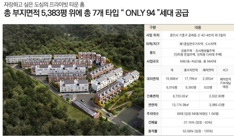 용도: 공동주택 - 도시형 생활주택(단지형 연립주택, 단지형 다세대 주택) 사업규모: 지하 2층~지상 3층, 총 94세대