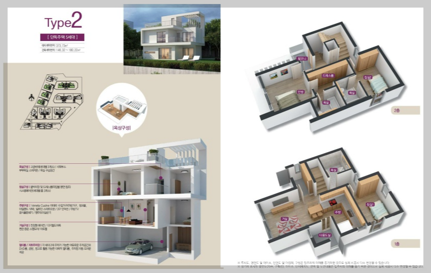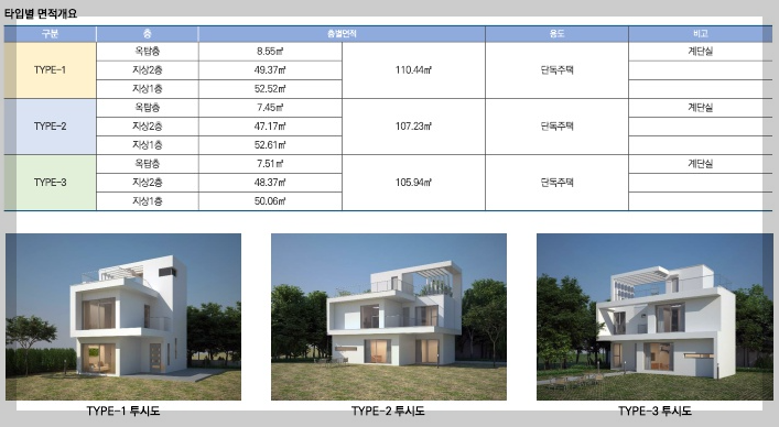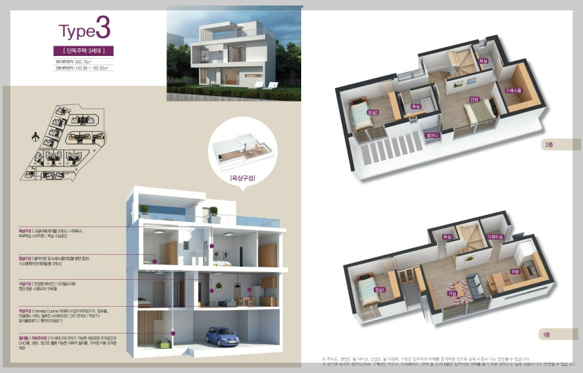 - 선택의 폭을 넓힌 3가지 타입의 단독주택 - 단독주택 17세대:2층구조,개인정원,개인주차장, 발코니 옥상정원테라스