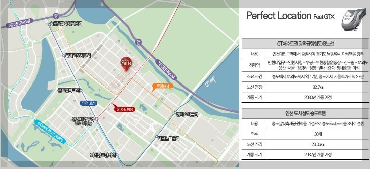 교통환경 역시 탁월한데 송도트램과 GTX-B노선의 예정된 개통으로 더욱 편리해질 것으로 예상됩니다. 이 외에도 단지 주변에는 센트럴파크, 미추홀공원, 송도달빛공원 등 풍부한 녹지가 자리하여 쾌적한 주거환경을 자랑합니다.