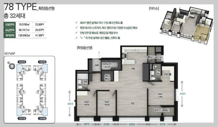 또한, 주상복합 아파트임에도 불구하고 월드메르디앙 송도는 어민생활대책용지 구역 내에서 어린이들을 위한 놀이터를 특화설계하는 등 주민 편의를 고려한 설계로 주목받고 있습니다. 전용률 또한 높아 주택 구성이 아파트와 유사하게 설계되어 있어 더 넓고 개방적인 느낌을 줍니다. 게다가 공사가 완료된 후분양 아파트로, 잔금 납부 후 즉시 입주가 가능합니다.