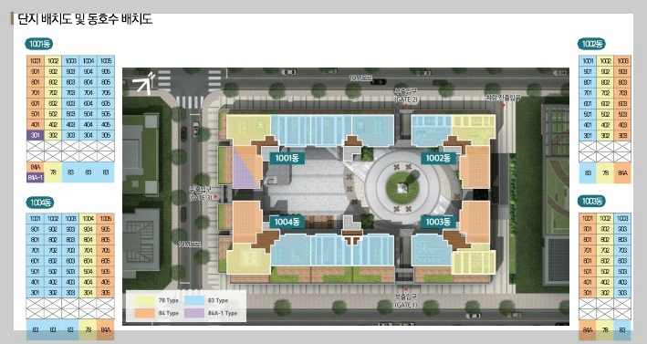 중앙광장을 기점으로 총 4개 동 단지 배치