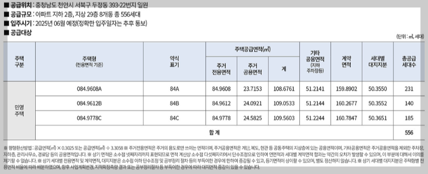 새로운 도시의 가치 천안의 새로운 프리미엄을 신두정지구에 약 9천여 세대의 주거타운으로 새롭게 변화하는 유보라 천안 두정역은 천안시 두정동 393-22번일 일원에 대지면적 28,264.00㎡, 건축면적 4,751.6154㎡, 연면적 89,959.9103㎡, 타입 84㎡A/84㎡B/84㎡C(단일평형) 총 8개 동 556세대로 규모로 조성합니다. 두정역 역세권에 자리하고 있어 지하철 1호선, KTX/SRT 천안아산역도 차량으로 15분 거리에 있어 타 지역 이동이 용이합니다. 학군으로는 천안 도솔 유치원(공립), 천안 두정초, 천안 두정중, 북일고, 북일여고등이 위치해 있습니다. 또한 생활 인프라로 주변에 메가박스, 롯데마트, 신세계백화점, 이마트 등 갖추고 있고, 성성호수공원, 두정공원등 숲세권 녹지 공간도 인접해 있습니다. 산업단지로는 삼성 SDI, 천안 제2.3 일반산업단지, 천안유통단지, 백석농공단지등 산업단지가 가깝게 있으면 입주는 2025년 6월 예정입니다. 편안한 휴식과 건강한 여가생활까지 일상을 즐기며 활력을 더하는 유보라 천안두정역에서 만나보세요