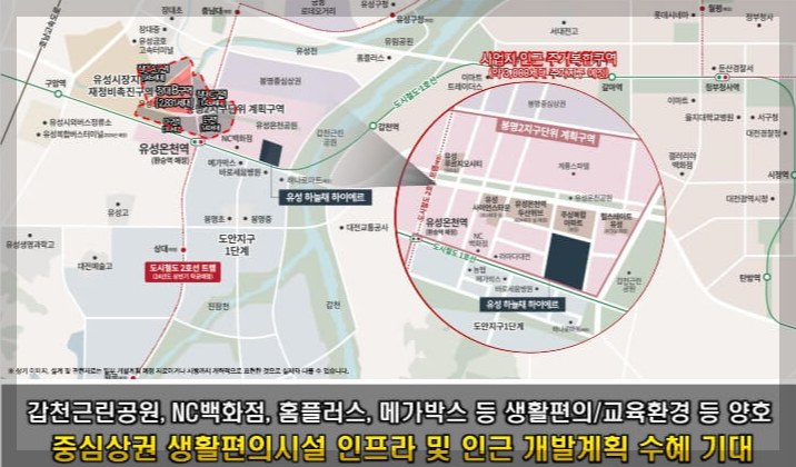 봉명동과 장대지구 개발로 인해 주거벨트의 새로운 중심으로 자리 잡을 유성 하늘채 하이에르는 주변 도안신도시와의 시너지 효과도 기대됩니다.