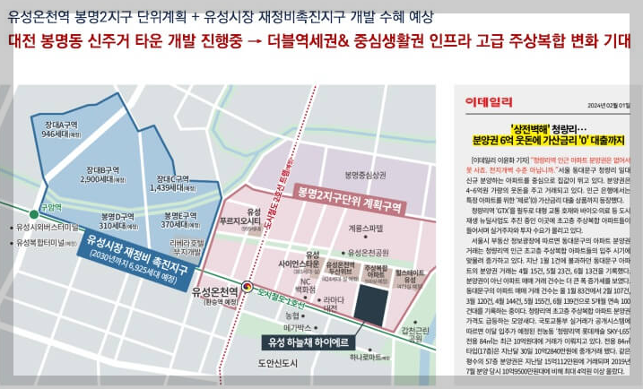 봉명동과 장대지구 개발로 인해 주거벨트의 새로운 중심으로 자리 잡을 유성 하늘채 하이에르는 주변 도안신도시와의 시너지 효과도 기대됩니다.
