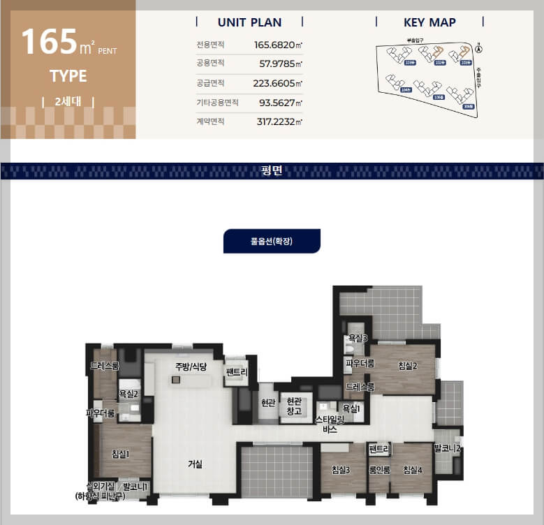 다양한 평형을 제공하는데, 84㎡ 5가지 타입과 85㎡ 초과의 중대형 평수가 있습니다.