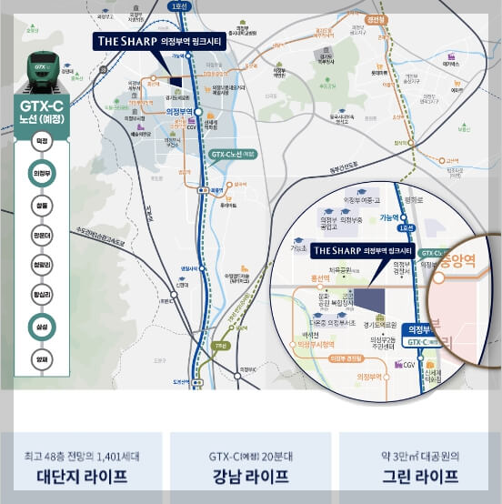 GTX-C노선 역세권과 40층 이상의 랜드마크 단지로 자리 잡을 예정입니다.
