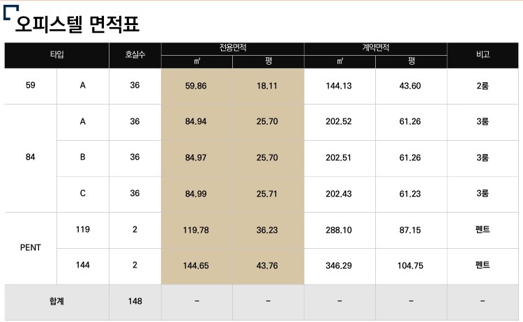 공급 호실수: 오피스텔 148실