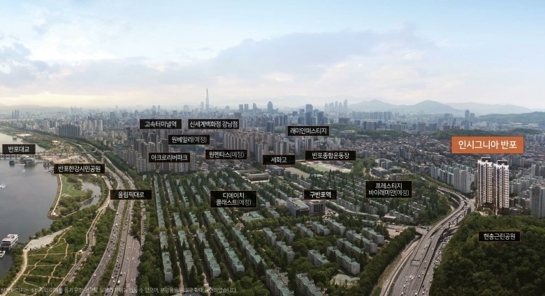 인시그니아 반포는 한강과 반포한강공원이 주변에 위치하여 자연과 녹지 환경을 즐길 수 있는 쾌적한 주거환경을 제공합니다. 이 지역은 학군, 교통, 생활환경, 그리고 재건축 가치 등 다양한 측면에서 매력적입니다.
