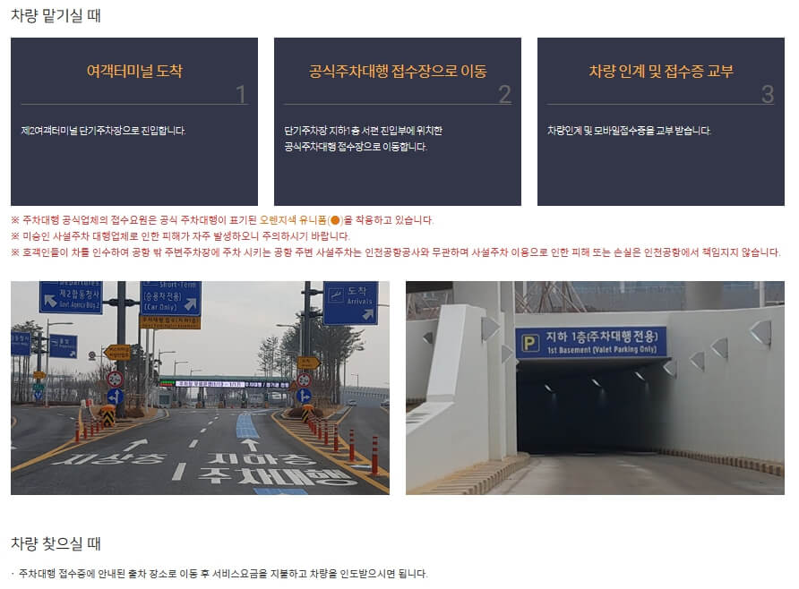 제2여객터미널 주차대행 서비스의 편의성과 특징