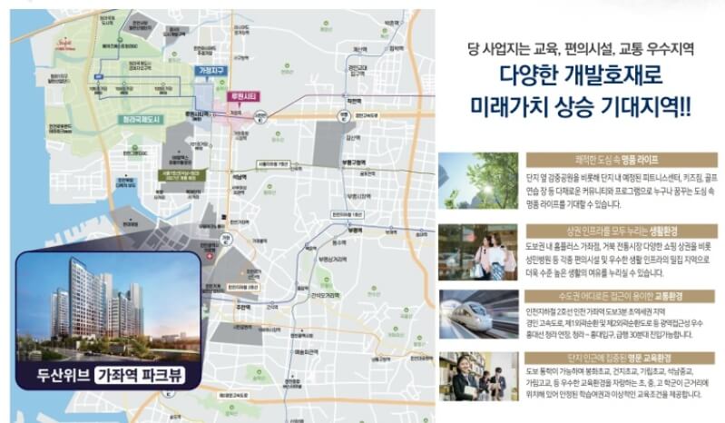 두산위브 가좌역 파크뷰는 탁월한 입지, 다양한 평형대, 우수한 교육 환경과 생활 편의성 등 모든 요소에서 긍정적인 평가를 받고 있으며, 향후 가치 상승이 기대되는 지역입니다.