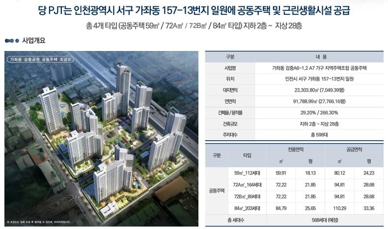 인천 가좌동 감중동 지역주택조합에서 추진 중인 두산위브 가좌역 파크뷰가 본격적인 조합원 모집에 나섰습니다. 지하 2층에서 지상 최고 28층 규모로 신축될 예정이며, 시공 예정사는 두산건설입니다. 20년 만에 이뤄지는 가좌동 내 신규 공급으로 주목받고 있으며 평당가 800만 원대부터 시작하는 합리적인 가격대도 초기 구매자에게 매력적인 요소로 평가됩니다. 다양한 평형대 구성으로 두산위브 가좌역 파크뷰는 다양한 평형대를 제공하여 실수요자와 투자자 모두의 요구를 충족합니다. 타입은 59㎡, 72A㎡, 72B㎡, 84㎡로 구성될 예정으로, 각 세대의 라이프스타일에 맞춘 설계를 선보일 것입니다.