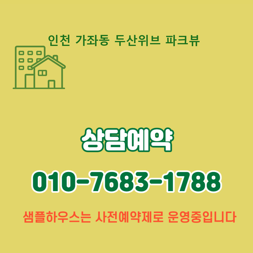 두산위브 가좌역 파크뷰의 홍보관은 인천 서구 석남동에 위치해 있습니다. 방문을 통해 자세한 상담과 현장 정보를 제공받을 수 있습니다.100% 사전예약제로 운영하고 있습니다. 상담 및 방문계획이 있으신 분은 아래 번호로 연락 주시면 상담 및 방문예약을 해드립니다. 감사합니다.