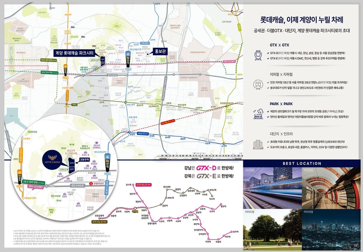 롯데건설은 인천 계양구 효성동 일원에서 '계양 롯데캐슬 파크시티'라는 대규모 아파트 단지를 4월 중 분양예정으로 단지는 총 3053 가구로, 1단지는 1964 가구, 2단지는 1089 가구로 구성됩니다. 전용 면적은 59~108㎡로 다양하게 제공되며, 주변에는 초. 중. 고교와 대형 공원이 위치해 있어 교육환경과 생활 편의성이 뛰어납니다. 계양 롯데캐슬 파크시티는 서울 강서구에 위치하여 서울로의 접근성이 우수합니다. 특히 작전역은 수도권광역급행철도(GTX) D·E 노선에 속하며, 이는 서울 강남권역과 디지털미디어시티권역과 연결됩니다. 이로 인해 서울과 인천 계양구 간의 이동이 더욱 편리해질 것으로 예상됩니다.