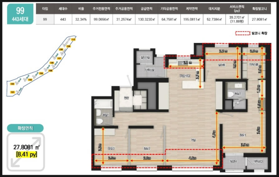 84A(607세대),84B(52세대),84C(268세대),99타입(443세대)