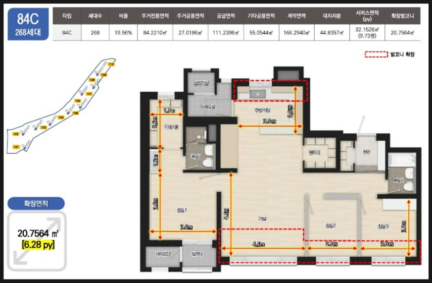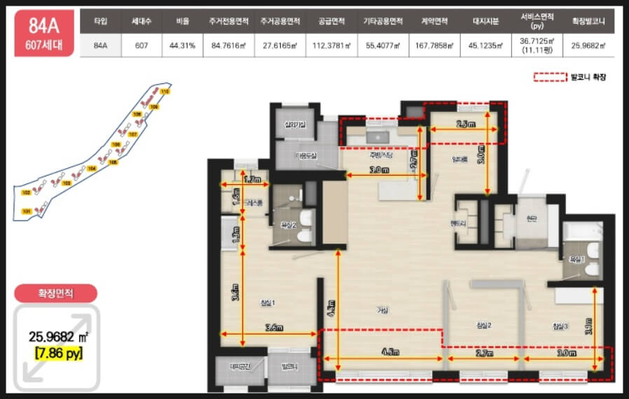 84A(607세대),84B(52세대),84C(268세대),99타입(443세대)