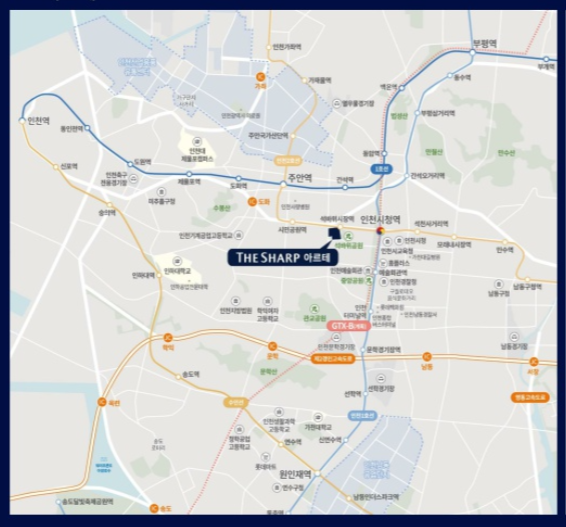 특히 수도권광역급행철도인 GTX-B노선(계획)되어 있어 추후 개통 시 서울까지 30분 이내로 이동이 수월하며 우수한 교육 인프라로 구월서초, 동인천중, 인천고가 도보권 내 위치하며, 주안도서관이 단지 바로 옆에 위치, 행정기관 인천광역시교육청, 인천시청, 인천지방병원, 인천문화예술회관등 다수의 공공행정기관이 자동차 10분 거리에 위치한 우수한 입지입니다.