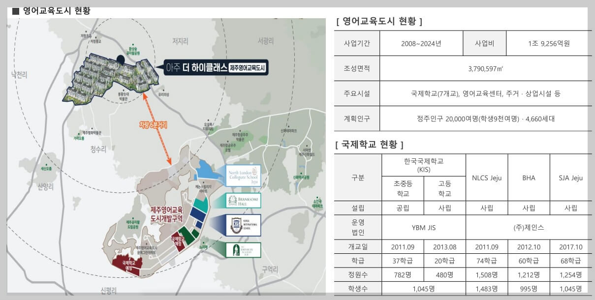 제주 영어교육도시에서는 약 4,000여 명의 재학생이 영어로 모든 수업을 받으며, 다양한 활동도 즐길 수 있습니다. 더불어 JDC가 앞으로 추가로 국제학교 2곳을 개설할 계획을 밝혔으므로, 국내 최고의 교육 단지로 더욱 성장할 것으로 기대됩니다.