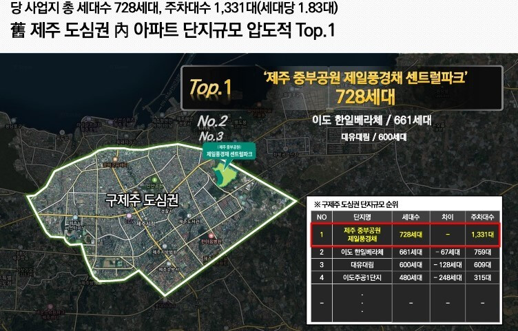 3년 후 입주 시 제주의 랜드마크가 될 것으로 예상되는 이 단지는 국토교통부 2023 시공능력평가 조경 부문 1위, 공원 조성 분야 3위인 제일건설이 제주에 처음으로 공급하는 민간공원 특례화사업 분양 단지로서 희소성과 상징성을 모두 갖추고 있습니다.