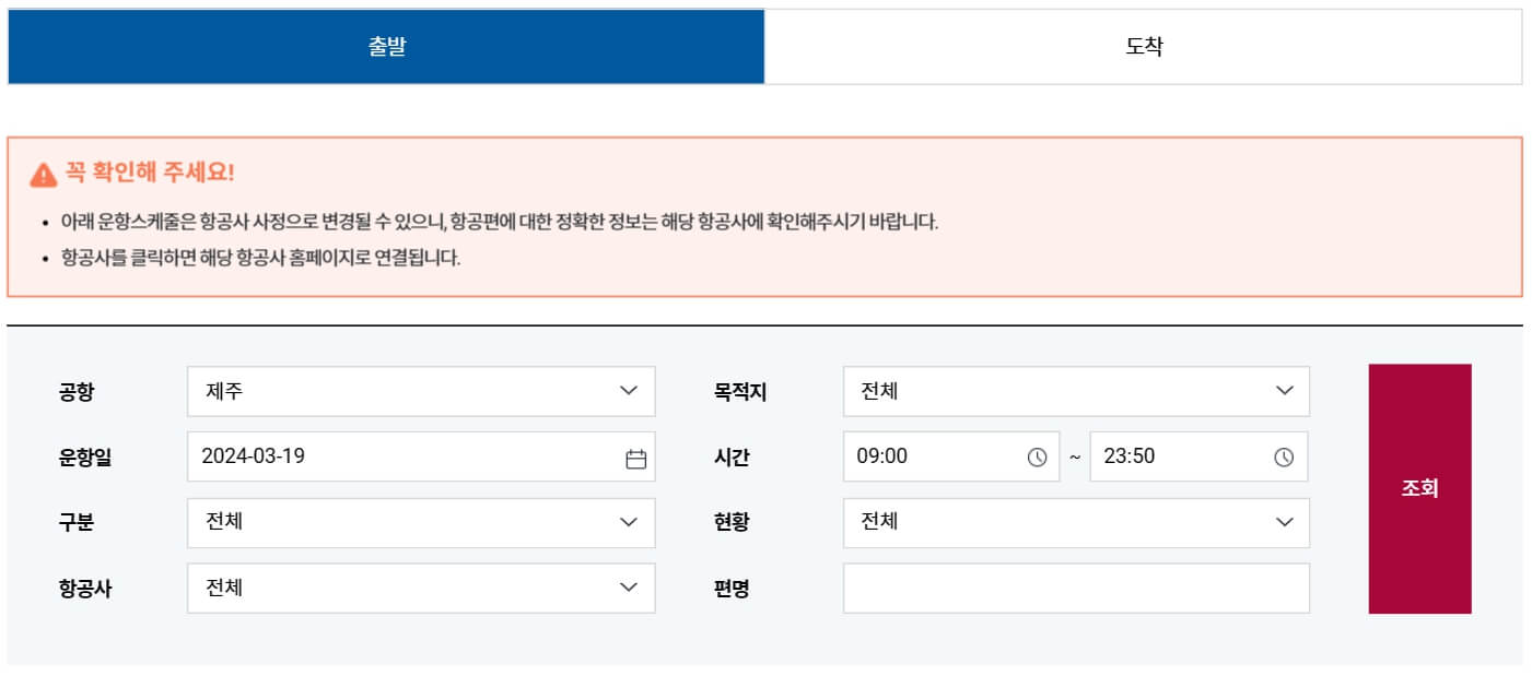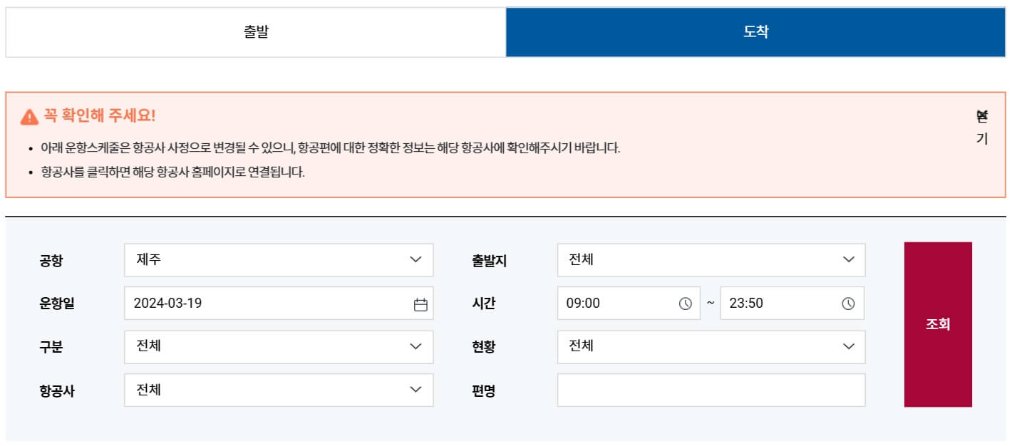 제주공항 국내선 출발, 도착 정보 및 항공권 예약