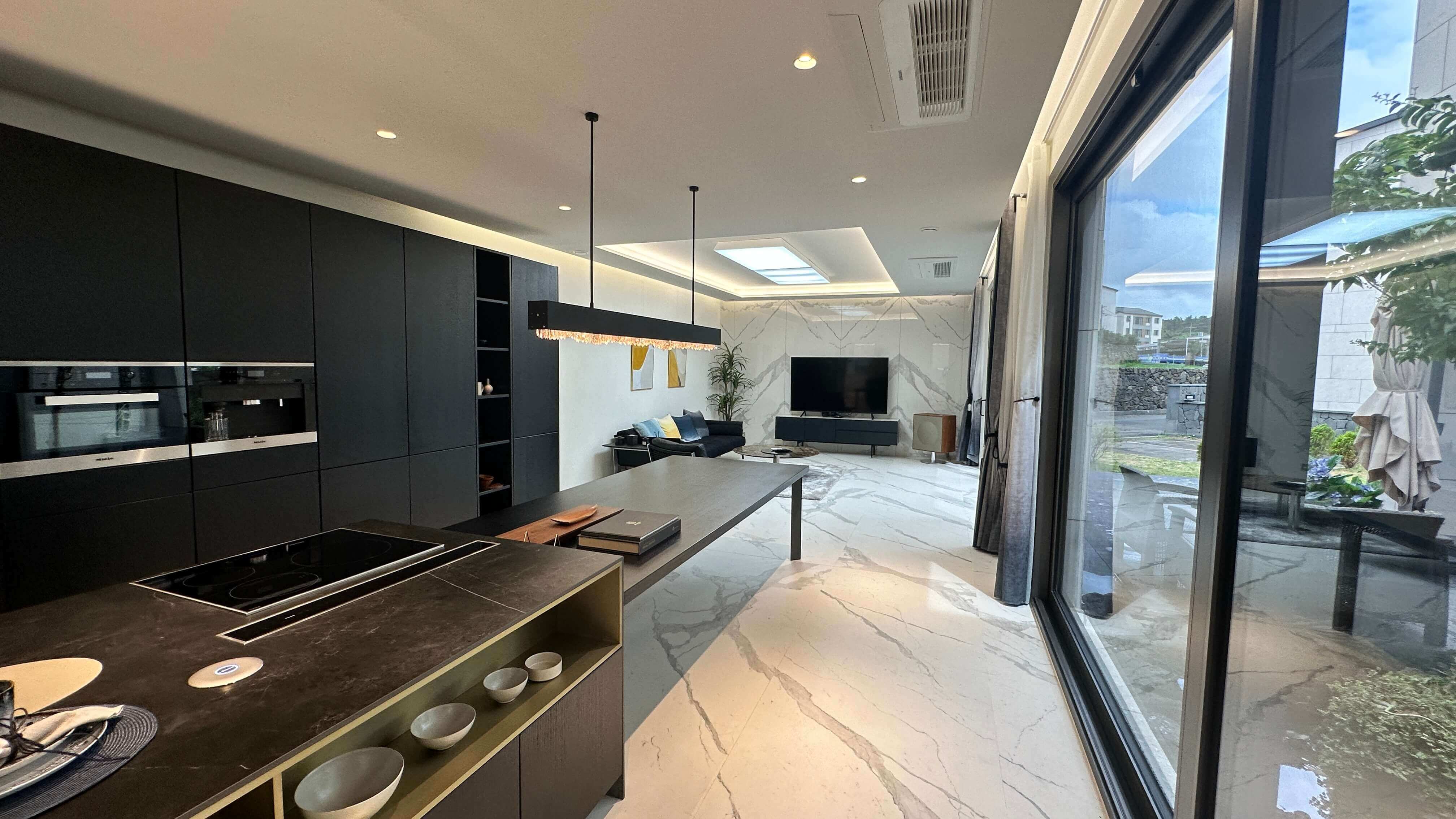 • 주방: 북유럽 노르웨이산 오크 무늬목 가구 + 이태리 세라믹 아일랜드 식탁