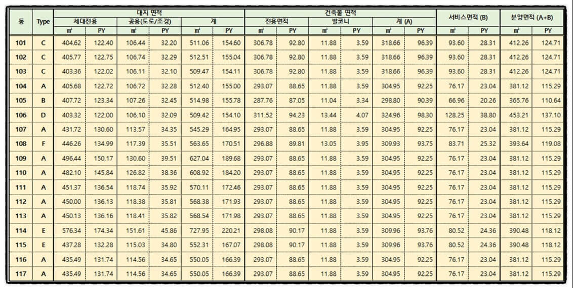 분양 면적 110~137평