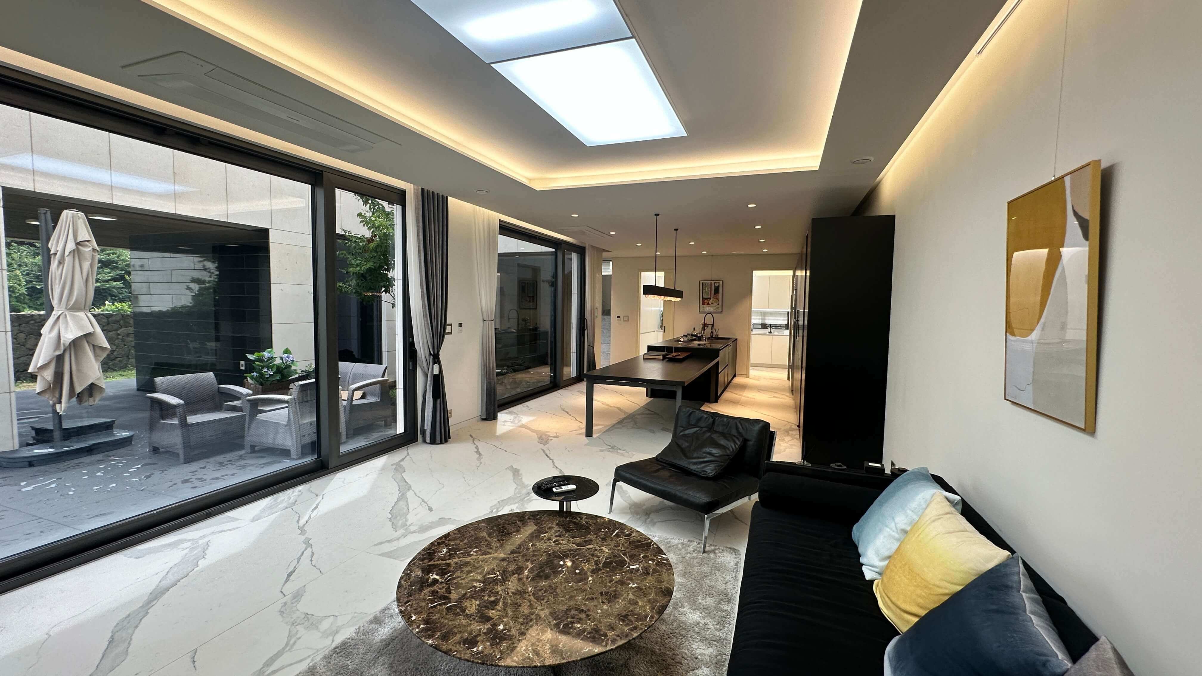 - 거실: 3m 높은 천장, 통창 구조로 밝고 넓은 공간감 제공