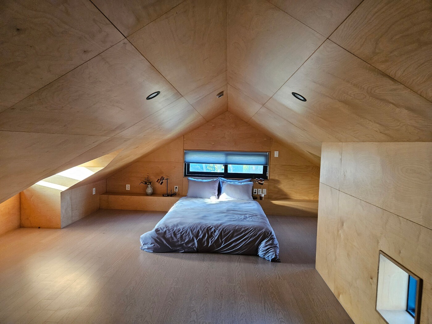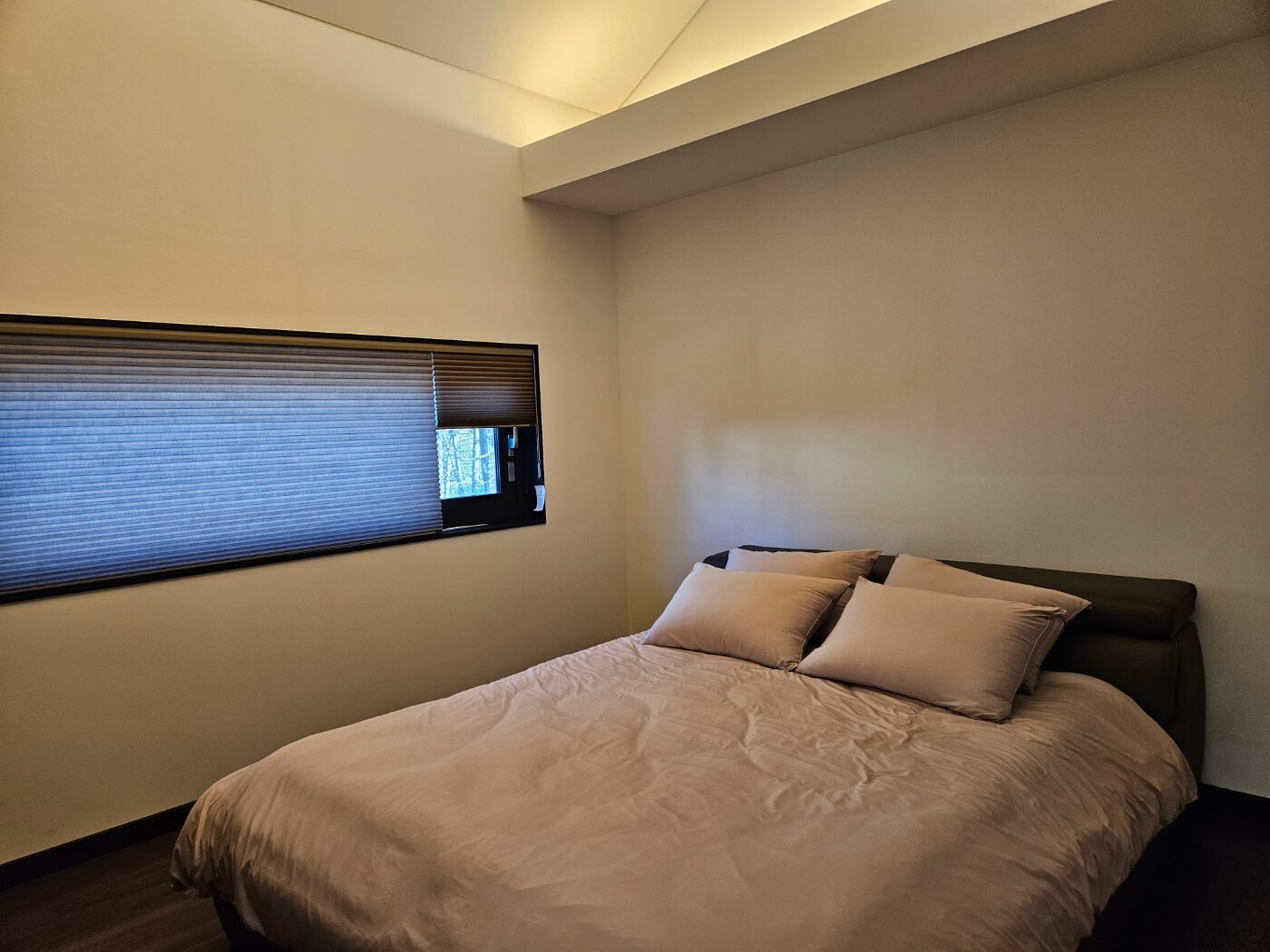 2층은 침실이 모여 있는 구조로 보다 아늑한 분위기를 제공합니다. 각 침실은 간접등과 따뜻한 색감으로 꾸며져 있으며, 테라스와 연결되어 있어 개방감을 줍니다. 2층에는 보조 주방도 있어 편리한 생활이 가능합니다.