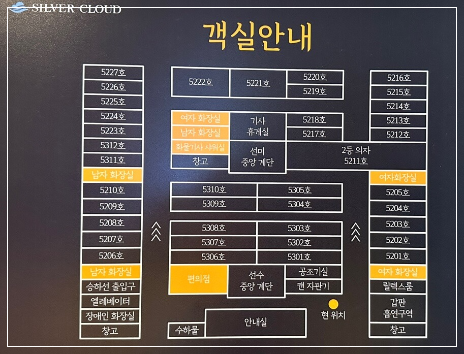 - 실버클라우드 호에는 식당 시설이 없으므로 출발 전 간단한 음식을 준비하세요.