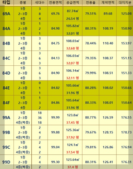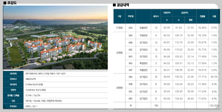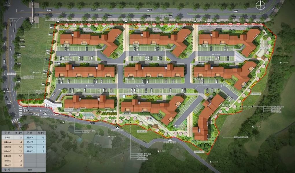 지하 1층, 지상 4층 9개 동/아파트 전용 69/84/99/전용률 77.71%