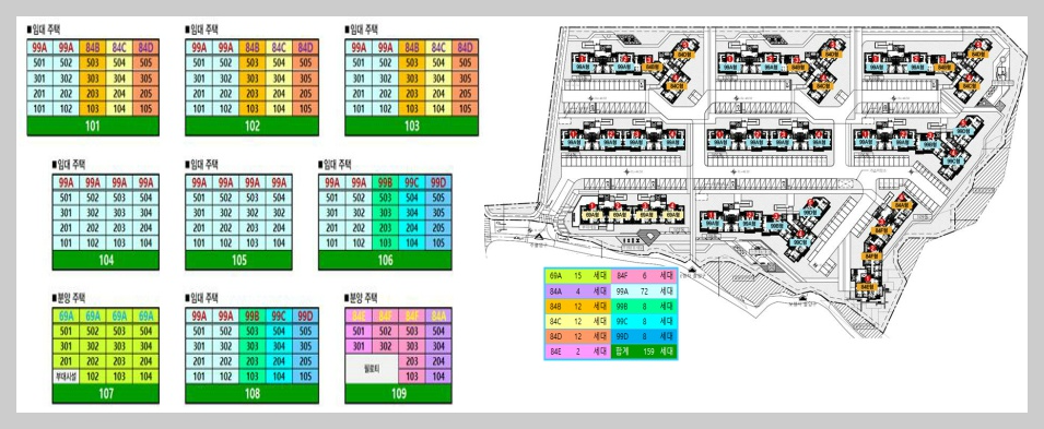 세대수:159세대/69 타입:15 대세/84 타입:48세대/99 타입:96세대
