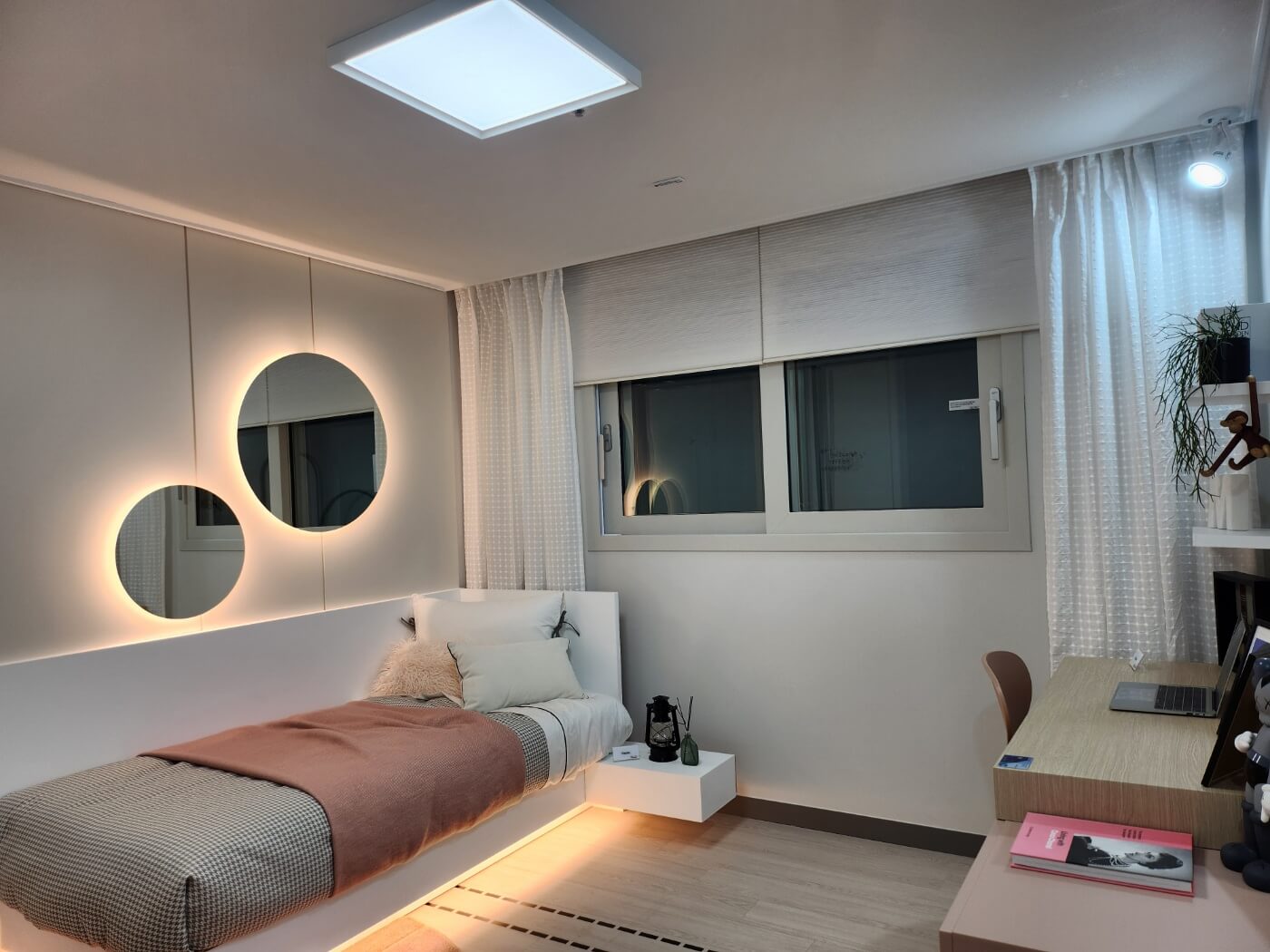 최신 스마트 시스템이 주거의 편리함을 한 단계 높입니다. 홈네트워크 연동 서비스와 IoT 호환 가전기기 제어 기능을 통해 세대 내부는 물론 외부에서도 스마트폰 앱을 통해 조명과 냉난방을 자동으로 제어할 수 있습니다. 외출 시 방문자 확인 및 현관문 열림 기능을 활용하여 안전하고 편리한 생활을 즐길 수 있으며, 다양한 빌트인 가전과 맞춤형 공간으로 삶의 질을 높일 수 있습니다. 주차장은 100% 자주식이며 80대까지 수용 가능한 형태로 구성되어 있어 주거 환경을 더욱 편리하게 만듭니다.