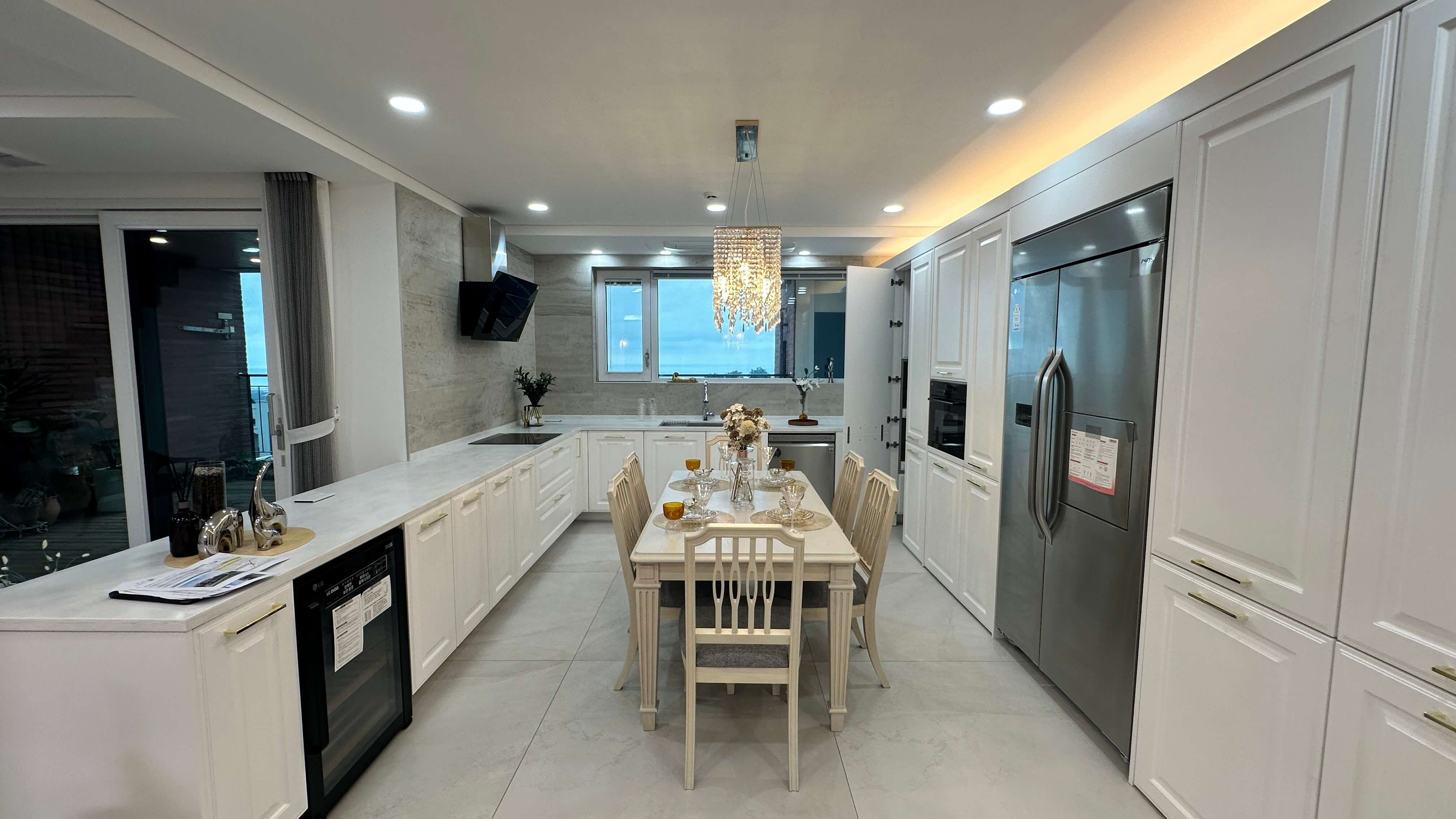 주방은 최신의 LG 가전제품으로 완비되어 있으며, 넓은 조리 공간과 수납공간을 제공합니다. 가족 모두가 함께 요리하고 식사할 수 있는 최적의 공간입니다.