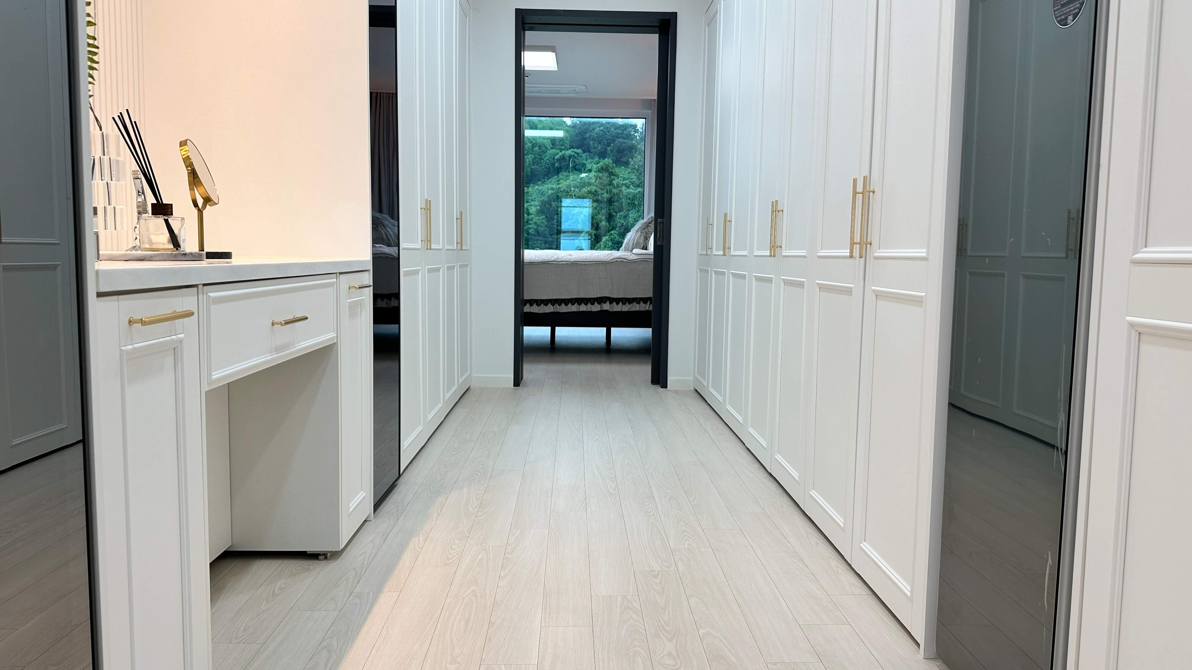 안방은 넓고 쾌적한 공간으로, 드레스룸과 파우더룸이 함께 있어 편리합니다. 안방 욕실은 고급스러운 디자인과 함께 넉넉한 공간을 제공합니다.